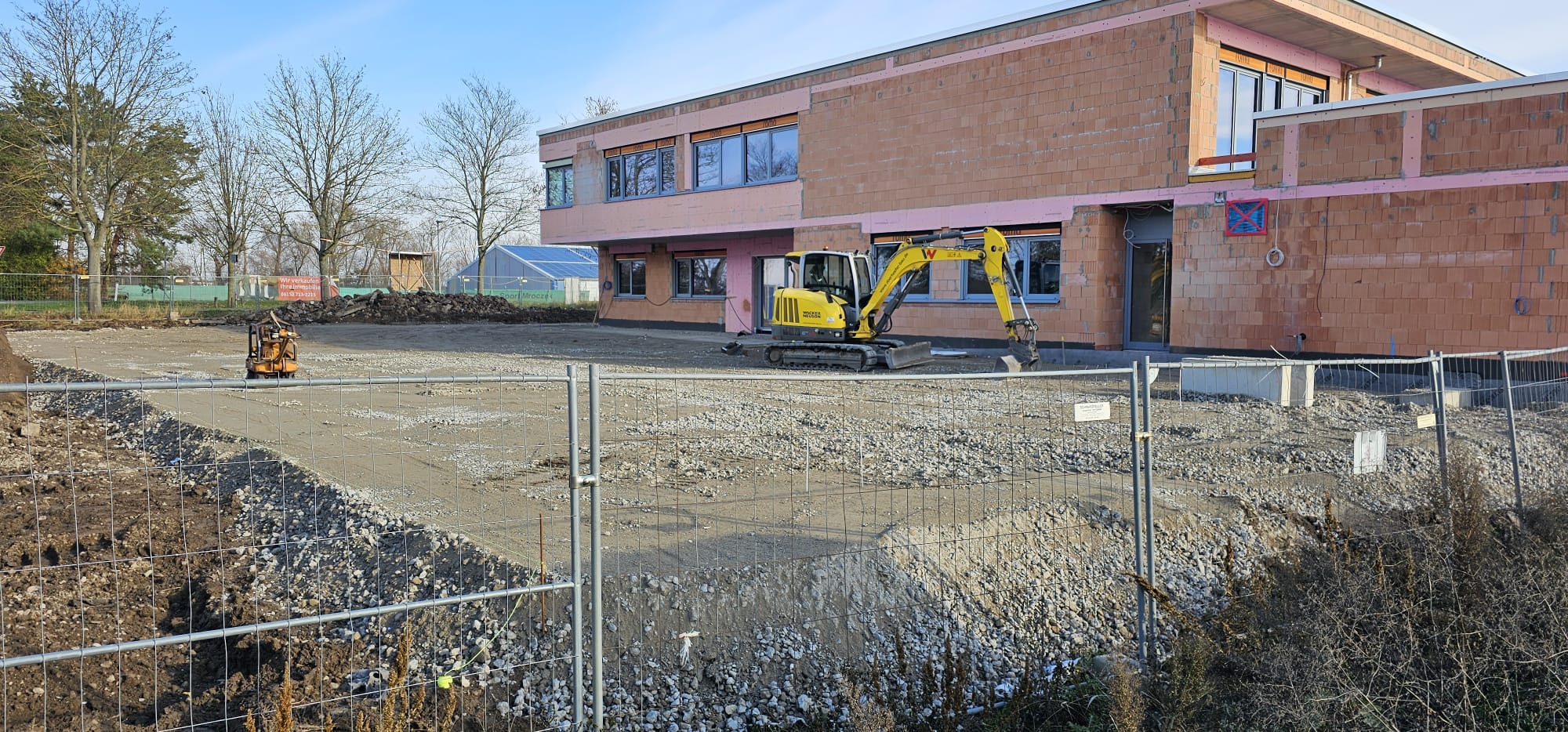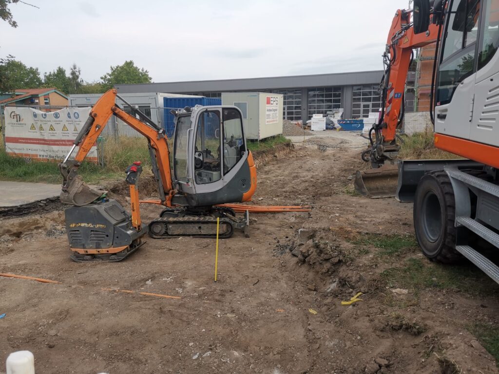 Die Bodenbearbeitungen der Außenanlage haben begonnen.