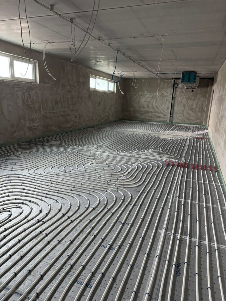 Langsam sieht man Fortschritte. Der Kran wurde gestellt. Außerdem wurden die Kanalgrundleitungen, welche unter der Bodenplatte aus dem Gebäude herausführen, verlegt.