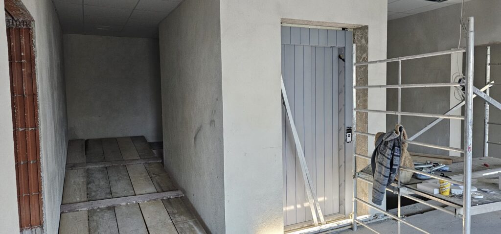 Im ersten Obergeschoss haben die Verputzerarbeiten begonnen.
