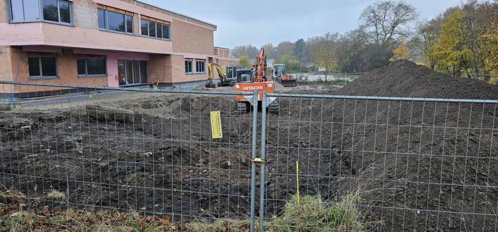 Nach lang ersehnter Zeit haben die Baggerarbeiten nach dem Spatenstich begonnen. Zuerst wurde die Fläche für das neue Gerätehaus ausgebaggert. Nach kurzer Zeit mussten die Bauarbeiten durch einen archäologischen Fund gestoppt werden. Glücklicherweise stellte der Fund sich als Fehlalarm heraus, sodass es am nächsten Tag mit den Baggerarbeiten weitergehen konnte.
